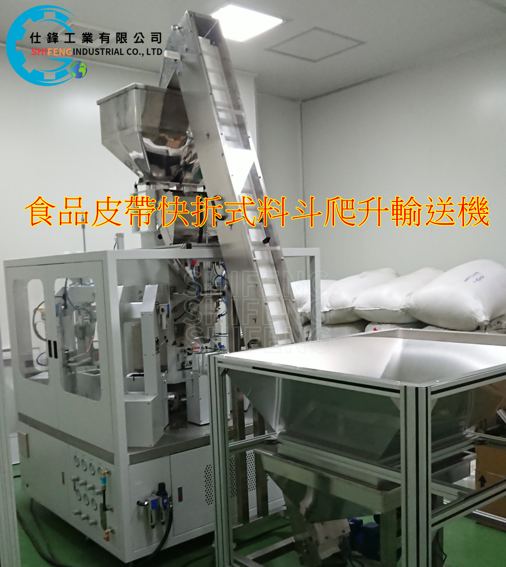 食品皮帶快拆式料斗爬升輸送機